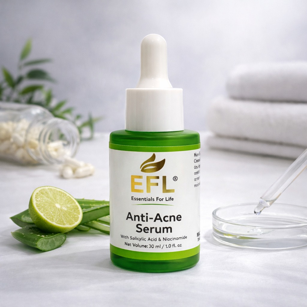 At EFL (Essentials For Life), we create effective, safe, and premium skincare. Our anti-acne serum helps you achieve clearer, healthier skin without harsh irritation while improving overall skin tone and texture.